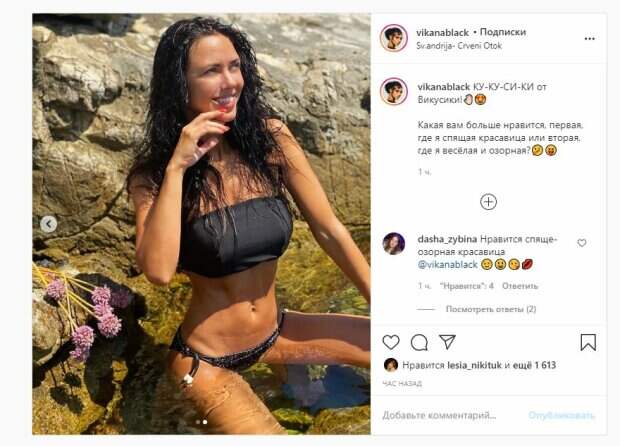 Волосы у звезды были распущены. На втором фото певица уже сидела в воде и была с открытыми глазами, куда-то смотря игривым взглядом. Об этом пишет Politeka.net со ссылкой на страничку знаменитости. "КУ-КУ-СИ-КИ от Викусики Какая вам больше нравится, первая, где я спящая красавица или вторая, где я весёлая и озорная?", - написала девушка. Фанаты, включая Лесю Никитюк, поставили более тысячи лайков и написали комментарии: "Нравится спяще-озорная красавица", "Непревзойденная богиня", "Пантера", "Обе классные, как не крути", "Красиво, черт возьми!", "Завораживает", "Какая же она красивая", "Первая просто огонь", "Где веселая и озорная", "Вика, как вам удается выглядеть так хорошо? У вас такая тонюсенькая талия! Как добиться такого результата?". Ранее мы сообщали, что солистка группы "НеАнгелы" Виктория Смеюха продолжает наслаждаться отдыхом в Хорватии. Красотка поделилась очередной порцией горячих фото на фоне Адриатического моря. На снимках девушка позирует в сдельном стильном купальнике. Напомним, Вика из "НеАнгелов" показала, как она выглядит без косметики на самом деле А еще Politeka писала, что жгучая солистка "НеАнгелов" приспустила одежду и ошеломила видом без макияжа Также Politeka сообщала, что Вика из "НеАнгелов" устроила влажные игры в черном бикини