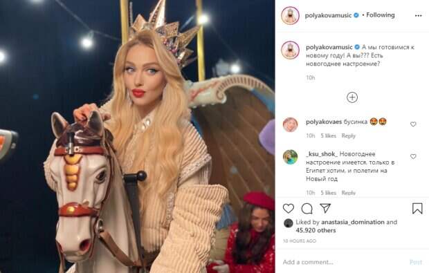 В таком образе "Королева ночи" погладила лошадку по пластиковой гриве и изобразила кокетливую улыбку. На заднем плане можно заметить девушку в красном, которая сосредоточенно что-то изучает. Вероятно, кадр сделан во время съемок нового клипа или проекта, посвященного наступающим зимним праздникам. "А мы готовимся к новому году! А вы??? Есть новогоднее настроение?", - поинтересовалась Ольга Полякова в описании. Пользователи социальной сети оценили новый образ поп-певицы и обратили внимание, что она заметно помолодела: "Какая Вы красивая ❤️