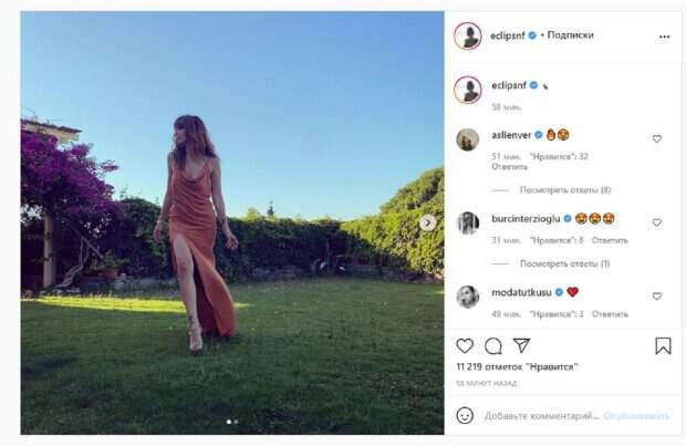И девушка старается не разочаровывать своих фолловеров, делясь регулярно снимками. В этот раз Нур появилась в платье с разрезом выше колена. Девушка гуляла по лужайке, впечатляя фигурой. На втором фото актриса развернулась спиной, демонстрируя роскошные формы. Фанаты поставили тысячи лайков и написали комментарии: "Что творит бог, "потрясающий образ потрясающей женщины", "Ты красивая моя любовь", "Какая вы красивая и элегантная женщина, мисс Нур", "Я тебя люблю. Привет из Казахстана". Напомним, красотка из "Великолепного века" показала себя без макияжа и с открытым декольте А еще Politeka писала, что красотка из "Великолепного века" показала себя без макияжа и с открытым декольте Также Politeka сообщала, что красотка из сериала "Великолепный век" восхитила видом в платье с открытым верхом