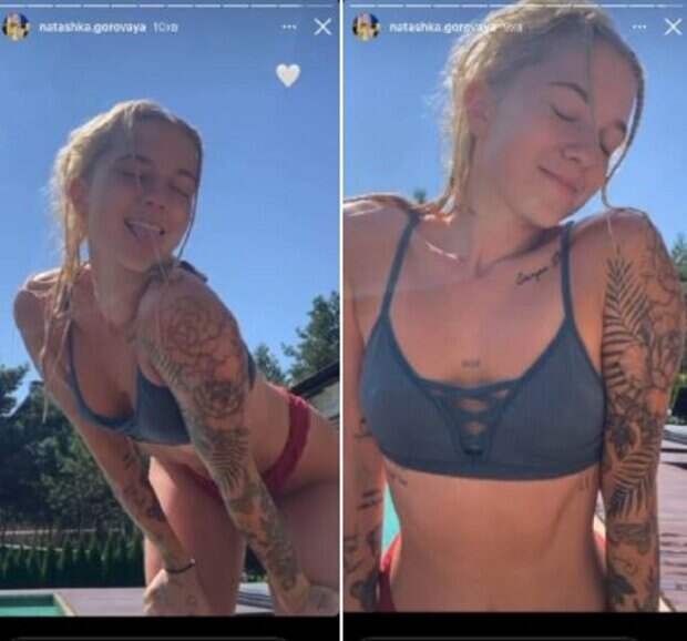 На новых кадрах, которые блогерыня опубликовала в Инстаграм, красотку можно увидеть в купальнике. На первом сторис Наташа нагнулась у бассейна, демонстрируя роскошные формы и татуировки, а язык высунула. На втором сторисе девушка просто сидела, показывая плоский животик. Горовая закрыла глаза от удовольствия, радуясь музыке и солнечной погоде. Фанаты не смогли комментировать публикацию или поставить лайки, ведь в сторис Инстаграм нет подобных инструментов для взаимодействия. Напомним, приемная дочь Потапа в миниатюрном топе покрасовалась плоским животиком перед зеркалом Также Politeka сообщала, что сын и падчерица Потапа на отдыхе всполошили криками весь пляж, кадры происходящего А еще Politeka писала, что экс-супруга Потапа с дочерью Наташей устроила переполох в сети, показав кадры с отдыха