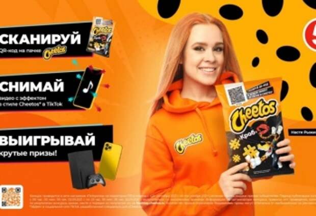 Cheetos создал топовую TikTok-пачку, которую можно найти только в «Пятёрочке». Новинка представляет собой упаковку Cheetos с QR-кодом. Он дает доступ к уникальному брендированному TikTok-эффекту, с помощью которого можно снимать крутые видео для соцсетей. Cheetos создал топовую TikTok-пачку, которую можно найти только в «Пятёрочке».