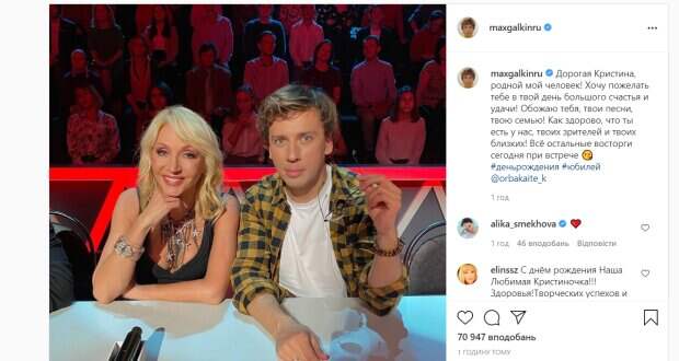 "Дорогая Кристина, родной мой человек! Хочу пожелать тебе в твой день большого счастья и удачи! Обожаю тебя, твои песни, твою семью! Как здорово, что ты есть у нас, твоих зрителей и твоих близких! Всё остальные восторги сегодня при встрече