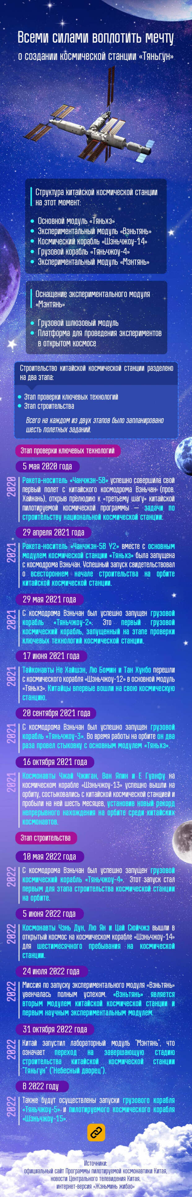 Как уже сообщала информслужба мобильного приложения "Россия-Китай: главное", первого ноября лабораторный модуль "Мэнтянь" успешно состыковался с китайской космической станцией "Тяньгун" ("Небесный дворец"). По данным Канцелярии программы пилотируемой космонавтики Китая (CMSA), позже, как и планировалось, будет совершена транспозиция модуля "Мэнтянь".