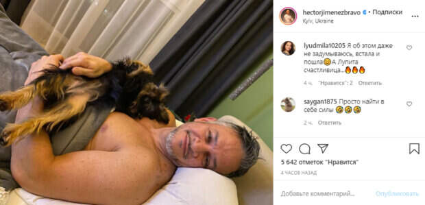 Ресторатор и судья кулинарного шоу "МастерШеф" Эктор Хименес-Браво вызвал бурю эмоций у публики Как передает Politeka.net, 48-летний шеф-повар опубликовал в своем микроблоге в Инстаграм свежее фото, на котором предстал в пикантном виде. Раздетый Эктор нежился в постели, прикрывшись пледом. К себе ресторатор прижимал свою любимицу - собачку по кличке Лупита.
