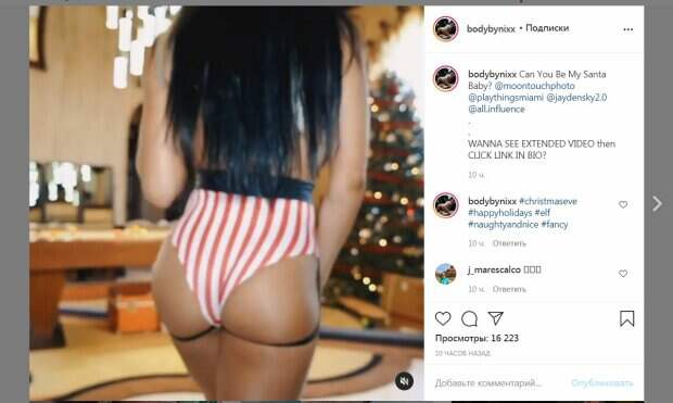 Крой шортов позволил рассмотреть упругие места во всей краске. Белоснежный топик выделил пышную грудь знаменитости, а его длина была довольно экстремальной. Амато надела черные ботфорты, обтянувшие ее стройные накаченные ножки. Меховые шапка и накидка стали отличным завершением образа звезды. Модель прошлась подпевая песенку, и красиво двигаясь с гордостью показывая идеальную фигуру, которую добилась благодаря упорным тренировкам. За 10 часов пост собрал более 16 тысяч просмотров и много комментариев. Пользователи сети написали много приятных сообщений в сторону жгучей брюнетки. "Сногсшибательная", - написал один из поклонников. Ранее мы писали, что Николь Амато разделась, накинув на свои совершенные формы прозрачную белоснежную сетку-платье. Большие формы впечатляли красотой, а самые интимные детали были скрыты под накладками. Тонкая талия и упругий животик - в этом теле есть, от чего нельзя оторваться. Ранее сообщалось, что Николь Амато позировала в сапогах, юбке, топе, митенках и шапочке Санта Клауса. Красотка стояла среди экзотической растительности и закрыла глаза от удовольствия. Модель не стеснялась показать все самое интересное, поэтому спустила бретельки топа. Напомним, фитнес-модель Николь Амато не оставила места для фантазии в прозрачной сеточке А еще Politeka сообщала, что фитнес-модель Николь Амато покорила размерами бюста, нарядившись в сеточку Также Politeka сообщала, что фитнес-модель Николь Амато прижалась к разгоряченной подружке в микро-бикини