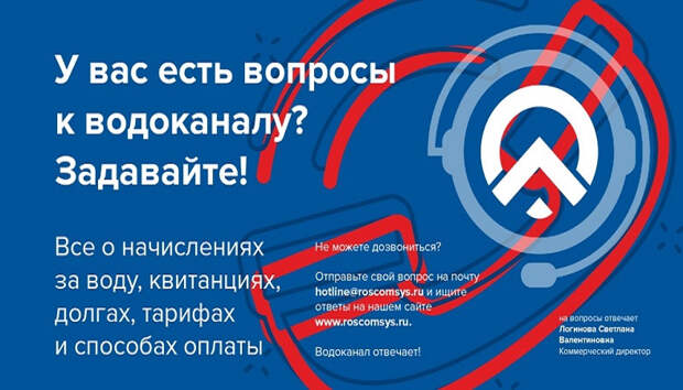 Горячую линию в режиме реального времени проведет коммерческий директор РКС Светлана Логинова Завтра «Российские коммунальные системы» с 11:00 до 12:30 будут принимать звонки от абонентов по всей России на тему водоснабжения и водоотведения в рамках «Горячей линии о холодной воде». Звонков ждут, в том числе и от клиентов «РКС-Петрозаводск».