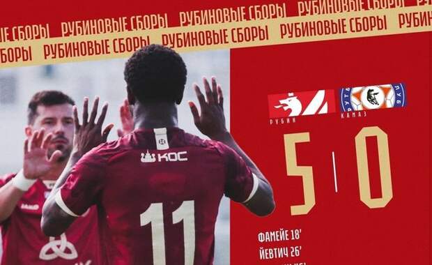 «Рубин» обыграл «КАМАЗ» со счетом 5:0 в товарищеском матче в рамках старта сезона Футбольной национальной лиги (ФНЛ). Игра проходила в Казани. В следующей игре казанцы сыграют против «Крыльев Советов». Матч состоится 28 июня. Подписывайтесь на telegram-канал и группу «ВКонтакте» «Реального времени».