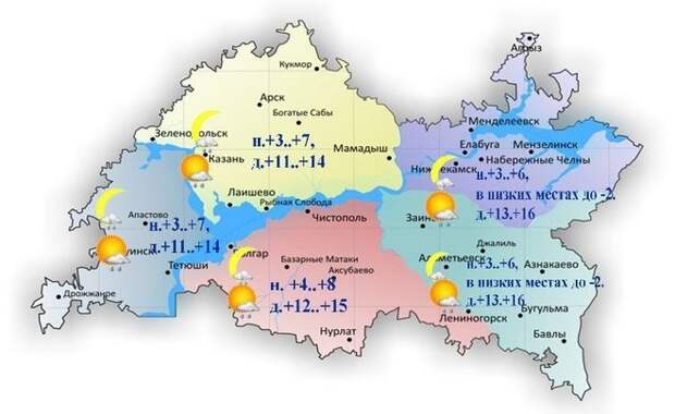 В Татарстане 15 октября будет облачная погода. Местами небольшой дождь, сообщили в Гидрометцентре республики. Ветер юго-восточный умеренный, местами порывами сильный до 15—18 м/с. Днем воздух прогреется до +11..+16˚ C. В Казани диапазон температур составит +12..+14˚ C.