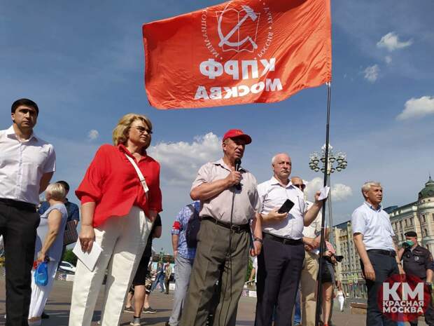 Коммунист-навальнист Валерий Рашкин провел сегодня на Пушкинской площади в центре Москвы очередной несанкционированный митинг под видом встречи с избирателями, передает корреспондент «ПолитНавигатора». Перед началом акции депутат Госдумы от КПРФ пообещал полиции не допускать нарушения, а его помощник Павел Иванов – раздавать всем участникам маски.