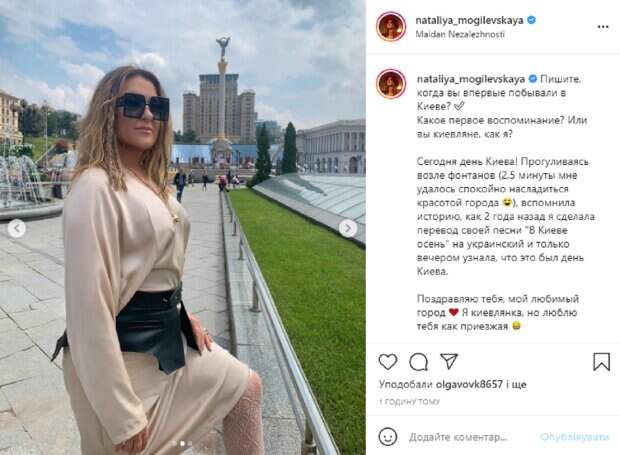 Как видно, на прогулку Наташа вышла в стильном образе – на ней светлое платье интересного фасона с широкими рукавами, поверх которого надела оригинальный черный корсет на талию, а свой образ дополнила необычными кружевными колготками. Ее волосы распущены и небрежно уложены, а на лице легкий макияж и огромные солнцезащитные очки. В подписи к публикации Могилевская рассказала, как любит свой родной город. "Пишите, когда вы впервые побывали в Киеве? Какое первое воспоминание? Или вы киевляне, как я? Сегодня день Киева! Прогуливаясь возле фонтанов (2,5 минуты мне удалось спокойно насладиться красотой города), вспомнила историю, как 2 года назад я сделала перевод своей песни "В Киеве осень" на украинский и только вечером узнала, что это был день Киева. Поздравляю тебя, мой любимый город. Я киевлянка, но люблю тебя как приезжая", - написала звезда. Напомним, известную певицу Наташу Могилевскую очаровал молодой парень-красавчик, флирт попал на камеру: "Ну может чуть-чуть". Как сообщала Politeka, Похудевшая артистка Наталья Могилевская раскрыла свой секрет борьбы с лишним весом: "Мой вариант – это полный отказ от...". Также Politeka писала, украинская звезды Наташа Могилевская раскрыла, кем ей на самом деле приходится мужчина, с которым ее засекли папарацци: "Он. ..".