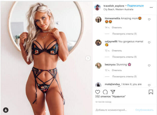 Теперь Хильде занимается рекламными фотосессиями белья и спортивных костюмов, которые примеряет перед зеркалом и с легкостью показывает лишнее. В этот раз девушка надела черные кружева с вышивкой из цветов на самых пикантных местах. Черная ткань в сочетании с маленькими красными цветами смотрелась очень соблазнительно, ведь образ модели дополнили также аккуратные подвязки, но без чулков. «Боже мой! Так прекрасна; Хорошо ❤️; Самая невероятная модель нижнего белья на свете; ️❤️красивая; Ты смотришь на себя ... мило .. нет. Белла .no.bellisimaaaaaa