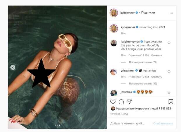 Об этом пишет Politeka.net со ссылкой на страничку знаменитости. "Плавание в 2021 году", - написала звезда под фото. Фанаты поставили более 7 миллионов лайков и написали комментарии: "Я не могу дождаться окончания этого года. Надеюсь, 2021 год принесет всем нам положительные эмоции", "Она думала, что это океан", "Прикрой бюст, девочка", "Боже мой, ты выглядишь фантастически", "Следите за теми, кто приходит рано?", "Вы потрясающий", "о боже, ты великолепна", "Такая шикарная девушка", "моя девушка", "я действительно просто хочу следовать своей мечте и смотреть на тебя", "Фантастические" Мы писали, что известная модель и бизнесвумен Кайли Дженнер показала упругий животик. Звезда надела белоснежную маечку, которая красиво смотрелась на ее загорелом теле. Кайли задрала одежду, сверкнув стройной талией и упругим животиком. Под майкой не было белья, поэтому грудь выглядела еще соблазнительнее. Напомним, Кайли Дженнер взбудоражила влажным телом в вызывающем бикини А еще Politeka сообщала, что Кайли Дженнер поиграла своей "непристойностью" в максимально прозрачном платье Также Politeka писала, что Кайли Дженнер вышла на прогулку без лифчика и заставила глотать слюнки