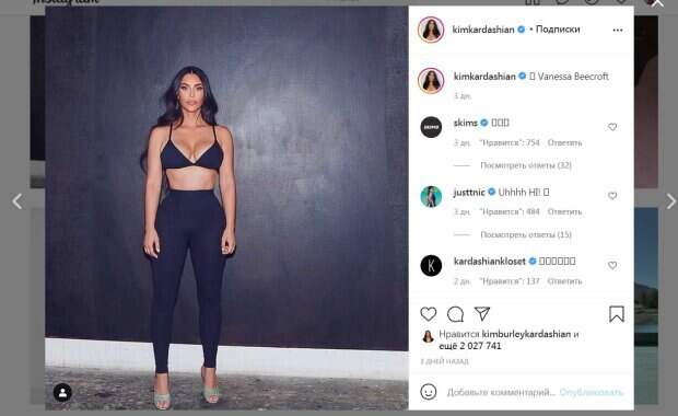 Модель была мокрой после купания, сквозь топ пробивался пышный бюст в купальнике. Кроме того, ткань красиво оплела тонкую талию, а длина топика позволила полюбоваться красивым плоским животиком звезды. Также Ким была в вязаных плавочках, держащихся на маленьких веревочках. Изгибы поражали своей красотой, ведь именно благодаря им Кардашьян завоевала всеобщую любовь. Завершили образ различные аксессуары, в том числе, стильные очки. Позади звезды открывался красивый вид на океан. За несколько часов пост собрал почти 1000 лайков и много комментариев. Пользователи сети написали в сторону красотки много приятных сообщений. "Возьми меня к себе, красотка", - написал один из поклонников. Ранее мы писали, что Ким Кардашьян хотя и делала несколько пластических операций, чтобы ее формами восхищались, однако она также и занимается спортом. Тренера звезды, Мелисса Алькантара, рассказала, что Ким стала тренироваться только после родов, чтобы подтянуть тело. Особое внимание модель уделяет трем частям тела: ногам, ягодицам и животу. Также она всегда тренируется с утяжелителями. Благодаря занятиям у Ким подтянулись живот, а ягодицы стали более упругими. Напомним, что Ким Кардашьян сверкнула всем, что принято скрывать, в прозрачном топе без белья: "Блаженство". А еще Politeka писала, что знойная Ким Кардашьян едва уместила притягательные формы в тесный кожаный наряд, покорив изгибами: "Скучаю по...". Также Politeka сообщала, что Ким Кардашьян испачкалась в грязи ради горячего кадра в трусиках и чулках: "Просто нет слов...".