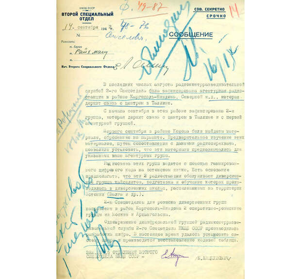 Архивные данные по обезвреживанию эстонских диверсантов в Архангельской области в годы Великой Отечественной войны опубликовала пресс-служба ФСБ России 4 мая на официальном интернет-портале. Опубликованы цифровые копии недавно рассекреченных документов, хранящиеся в УФСБ России по Архангельской области.