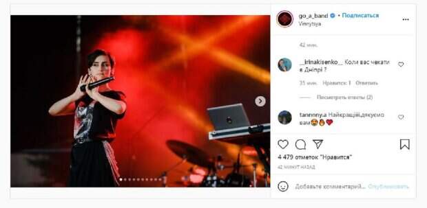 На новых кадрах, которые опубликовали на страничке Go_A, группа выступала на День города в Виннице. Катя Павленко с другими участниками группы порадовала жителей города украинской музыкой. "Винница, были рады выступить на вашем Дне Города! Спасибо за теплый прием А уже сегодня ожидайте нас во Львове на фестивале в 21:00", - написано было под фото. Фанаты поставили более 4 тысяч лайков и написали комментарии: "Когда вас ждать в Днепре", "Лучшие, спасибо вам", "Пришла на концерт только ради вас. Спасибо, что приехали. Вы самые лучшие! У меня болели ноги, потому что танцевала весь ваше выступление", "Очень хотела вас увидеть и не успела, так жаль ... приезжайте снова к нам !!!", "Вы крутые были вчера". Напомним, солистка Go_A Павленко оказалась с мамой на улице и чуть не умерла А еще Politeka писала, что солистка Go_A с трибуны шоу "Співають всі" высказалась об украинском шоубизе Также Politeka сообщала, что солистка Go_A Павленко, уехав в Бельгию, озадачила новым фото