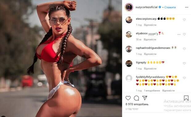Красотка решила прикрыть лицо очками, в внушительные формы ярким красным бельем. «Боже, а что оно прикрывает? Разве это белье?», «вот шалунья», «Невыносима. Каждый кадр жарче предыдущего», «невероятная красота», «Сьюзи, ты лучшая в мире женщина», «очень горячо и дорого выглядишь», — пишут ее поклонники. Как сообщалось ранее, популярная бразильская супермодель Сьюзи Кортез сверкнула упругой красотой во время тренировки в спортзале. На снимке Корзет позирует в белье из кожанных веревок, держась руками за тренажер. Дополняли образ знаменитости лишь красовки с черными носками. Красотка повернулась на камеру спиной, из-за чего в кадр во всю красоту попала ее главная гордость, благодаря которой она победила на конкурсе "Мисс Бум Бум", став обладательницей самых красивых ягодиц в мире. Волосы модель решила распустить, хотя сама и отвернулась от камеры. Напомним, хозяйка самых красивых ягодиц Сьюзи Кортес сбросила лифчик и ошеломила размером А еще Politeka сообщала, что хозяйка самых красивых ягодиц в тесном наряде похвасталась упругостями Также Politeka писала, что хозяйка самых красивых ягодиц похвасталась "титулом" в белье из веревочек