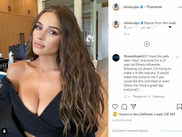 Вырез был настолько смелым, что "спелые персики" едва ли не показывались из него полностью. Прелести Оливии сжались под топом, видимо, от белья. Красотка кокетливо приспустила плечо, засветив шелковое тело. Длина одежды позволила рассмотреть тонкую талию и стальной пресс модели. Модель распустила длинные волнистые волосы и закинула голову набок. Калпо улыбалась и смотрела в камеру. Заметно, что на ее веках - розоватые тени, это придавало яркости образу. За 12 часов пост собрал почти 160 тысяч лайков и много комментариев. Пользователи сети признавались модели в любви, а также называли своей королевой. Напомним, Оливия Калпо позировала в лифчике, который отлично подчеркнул ее грудь. Небольшие формы едва ли вмещались в тесном белье. Сверху модель надела жакет с укороченными рукавами. Звезда расстегнула пуговицы, из-за чего и можно было увидеть ее красивые формы. Ранее мы писали, что Оливия Калпо предстала в красном топе, который натянулся на ее пышной груди, вероятно, под одеждой не было белья. Топик имел необычный крой с приспущенными плечами. Пикантный вырез посередине придавал образу еще больше соблазнительности. Благодаря длине топика можно было рассмотреть упругий живот звезды. Фото получило массу приятных отзывов. Напомним, "Мисс Вселенной" Оливию Калпо застали за жаркими развлечениями с бойфрендом: "Ты завоевал меня..." Как сообщала Politeka, "Мисс Вселенная" Оливия Калпо в смелом декольте показала, почему не носит белье: "Реальная Барби" Также Politeka рассказывала, что "Мисс Вселенная" Оливия Калпо устроила жаркие танцы в бесстыжем топе: "Конфетка"