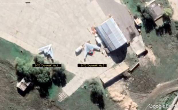 Данные со спутников GoogleEarth подтверждают готовность второго экземпляра тяжелого БПЛА «Охотник» С-70. На представленном снимке из ангара, вероятно, на аэродроме 929-го Государственного летно-испытательного центра имени В.П.Чкалова, выкатили два новейших беспилотника.
