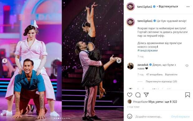 Новый сезон шоу "Танці з зірками" стартовал 5 сентября За победу будут бороться пары Lida Lee и Алексей Базэла, Олег Фагот Михайлюта и Екатерина Тришина, Александра Зарицкая и Юрий Мешков, Дмитрий Каднай и Алина Ли, Станислав Горуна и Даниэлла Преап, Анастасия Оруджова и Денис Самсон, Евгения Власова и Максим Леонов, Константин Войтенко и Роксолана Маланчук, Иван Люленов и Яна Цибульская, Алексей Суровцев и Мария Колосова, Ольга Харлан и Дмитрий Дикусар, JAMALA и Антон Нестерко, а также Артур Логай и Анна Карелина.