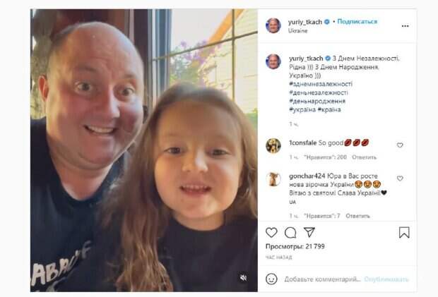 Украинский юморист Юрий Ткач, звезда "Квартал 95", показал себя с дочерью Как пишет Politeka.net, Юрий Ткач является популярным украинским шоуменом, став звездой "Квартал 95". Юморист активно ведет социальные сети и решил не оставать от коллег, поздравив украинцев с Днем Независимости. На новом видео Юрий сидел в футболке рядом с малышкой-дочерью.