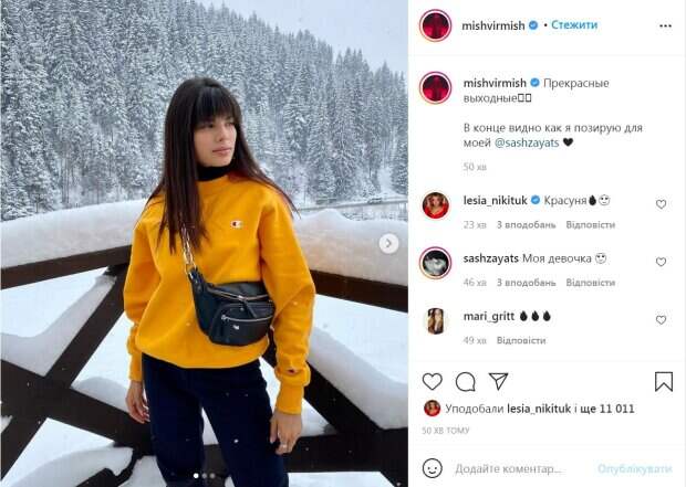 Девушка обошлась минимумом косметики, подчеркнув естественную красоту. Темные ровные волосы она оставила распущенными. Отметим, певица сразила своей красотой даже популярную телеведущую Лесю Никитюк, которая не смогла «пройти мимо», и оставила свой комментарий. «Красотка», - написала теледива. Фолловеры певицы также осыпали ее комплиментами. «Какая красивая», «Не замёрзла хоть, пока фоткалась?», "Вау", «Классная причёска», «Молодость всегда прекрасно», «Самая бомбовская», - пишут в комментариях. Напомним, Мишель Андраде стала популярной после того, как поучаствовала в шоу "X-фактор". Будущая звезда родилась 10 ноября 1996 года в Кочабамбе, крупном городе Боливии. Мать Мишель – украинка, которая отправилась в далекую страну за своей первой любовью. Отец Марио в юности играл в эстрадном ансамбле и привил дочери любовь к музыке. Напомним, Мишель Андраде застали в постели с Позитивом, скрывались недолго А еще Politteka сообщала, что Мишель Андраде и Позитив подогрели слухи о романе, пару можно поздравить Также Politeka писала, что Мишель Андраде и Позитив подогрели слухи о романе, пару можно поздравить
