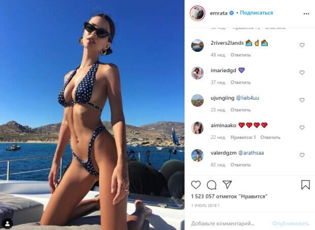 Она проводит там некоторое время, посещает бассейн и не боится лежать голой рядом с другими женщинами. Ей нравятся скрабы, поэтому она не отказывается от них у косметолога. «Для меня важно чувствовать себя хорошо, когда ты поел. Я люблю свекольные соки и куркуму. Это так по-лос-анджелесски, и тебе этого не избежать. Но у меня нет тренера, и я не хожу в тренажерный зал. Я долго гуляю со своими подругами. Это все. Я просто не одержимый фитнесом человек. Я определенно выбиваюсь из ряда в своей отрасли» - отмечает модель в Инстаграм. Яркое фото звезды, на котором она позирует в бикини в горошек поразило поклонников – стройная звезда восхитила идеально плоским животом. «Я не могу остановиться. Голы AF 😍», «Я люблю это ❤️❤️❤️», «Просто роскошь, детка🏊 ☝ 🏊», «Какая шикарная малышка» «девочка, какая же ты горячая», «больше не худей» «Сколько здесь горячего❤️❤️❤️❤️», «Люблю тебя, детка», «@ dan_coombs1 это будет мое тело после тренировки xx», «❤️ Горячее тело ❤️», «Мне нравится», - пишут фанаты. Отметим, Эмили любит блистать своими образами, публикуя в социальной сети Инстаграм жаркие фото. Девушка предпочитает естественность, поэтому даже на модных мероприятиях или во время развлечений с мужем она появляется без макияжа и укладок. Девушка боится, что косметика испортит ее кожу, а укладки попросту уничтожат локоны, как это было с другими ее коллегами моделями. Поэтому ранее она также позировала в естественном виде без мкияжа, украшений и укладок. Интригующим ее образ сделало коротенькое черное платье, совсем не скрывающее достоинств звезды. «Что у нее с грудью», «Эмили, не перегибай», «Боже, идеально соблазнительно», «шикарно и романтично», «воу, что это еще за позы, девочка», «Зачем так изгибаться», «Огненная брюнеточка🔥🔥», «La ternura q me da el collar de Colombo😭❤️», «как так?», «Прекрасно 😍,» «роскошь и сладости👊👍👍👍🔥», «О, мой бог», «Очень мило💕», «Красиво ❤️», - пишут пользователи. Напомним, лохматая Эмили Ратаковски ошеломила переменами во внешности, стала еще красивее Также Politeka писала, что Ратаковски разделась и без стеснения показала, чем ее наградила природа А еще Politeka сообщала, что Ратаковски без лифчика повеселилась перед зеркалом в томной позе