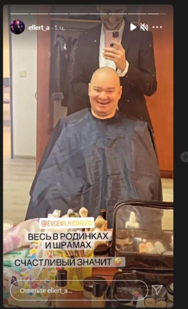 Финалист "Холостячки" Александр Эллерт изумил кадрами с комиком Евгением Кошевым Как передает Politeka.net, Эллерт, являющийся сценаристом "Квартал 95", опубликовал новые "сториз" у себя в Инстаграм, на которых показал, что творится в гримерке. Так, Кошевой, со своей неизменной уже много-много лет прической, сидел перед зеркалом с накидкой на плечах, как в парикмахерских.