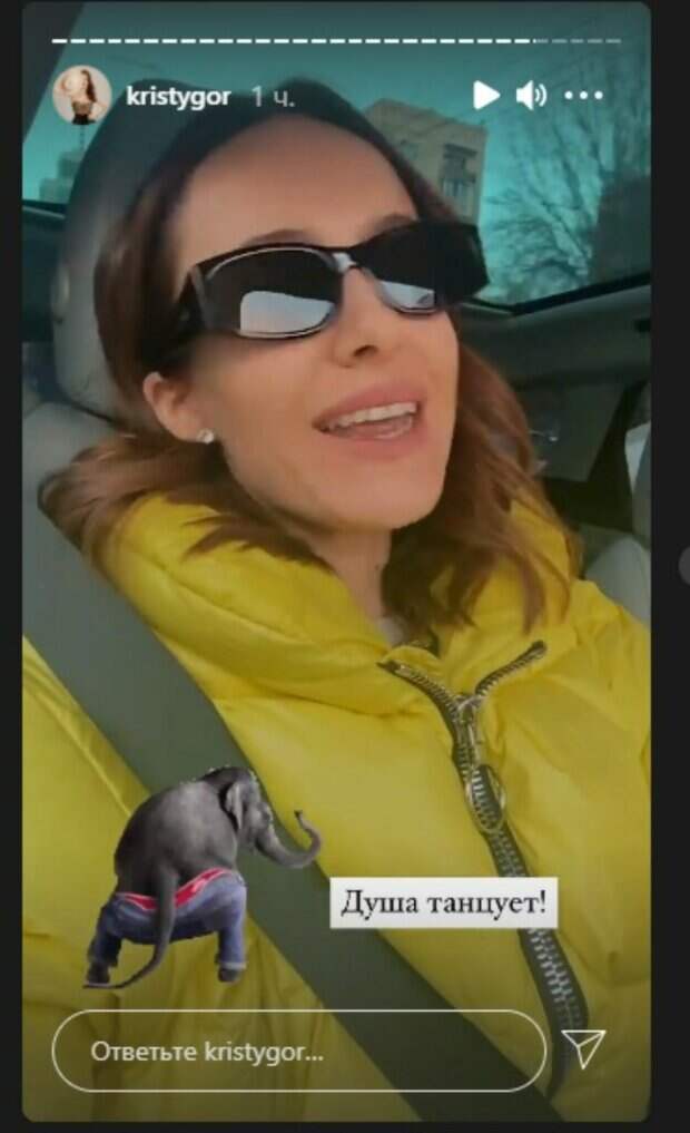 Новая жена телеведущего Владимира Остапчука Кристина Горняк обескуражила неожиданным откровением Как передает Politeka.net, девушка опубликовала свежие кадры в "сториз" в Инстаграм, на которых показала, как гостит у своей мамы. Так, по дороге к дому родителей Кристина "кайфанула" под старые хиты. Девушка была за рулем в темных солнцезащитных очках и желтой дутой курточке.