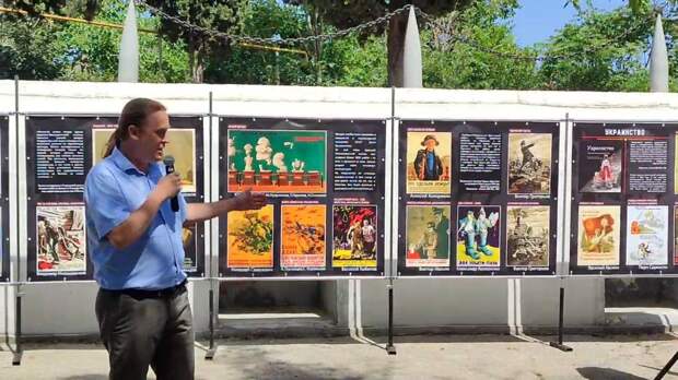 «Мне кажется, что эта тема сейчас актуальна, как никогда. Мы видим, что фашизм снова поднимает голову на Западе и уже в полный рост стал на Украине», — заявил Сорокин. Он напомнил, что фашисты всегда боролись с культурой, публично сжигая произведения неугодных авторов. По его мнению, фашизм пробуждает в человеке все звериное и давит духовное начало. «Один из моих любимых плакатов — это „Фашизм — враг культуры“. Там точно показано, что фашизм борется не только против отдельных народов, но и против культуры. Мы видим, как на Украине сейчас уничтожаются памятники всем русским и советским писателям и поэтам», — заявил Сорокин. Активист также рекомендовал зрителям ознакомится с монографией «Украинство», выпущенной под редакцией политолога, лидера движения «Суть времени» Сергея Кургиняна. Сорокин подчеркнул важность подобных исследований, так как, по его мнению, необходимо знать против какого врага сражается наша страна. «В монографии разбираются культурные и исторические аспекты феномена „украинства“ и почему оно так легко слилось с фашизмом. И как так получилось, что украинские наследники победителей сейчас воюют под нацистскими символами?» — заявил Сорокин. После концерта, на котором были исполнены песни времен Великой Отечественной войны и новые патриотические композиции, зрители могли подробнее ознакомиться с выставкой. glavno.smi.today