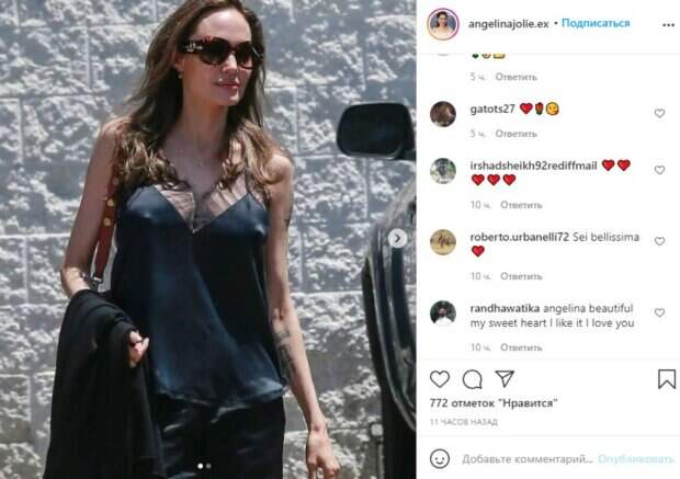 Поэтому стиль Джоли в одежде стал более консервативным. На фото, которые поклонники представили в сети, можно заметить, что некоторые пикантные детали образов Анджелины остаются неизменными. К примеру, ее нелюбовь к лифчикам. Звезда не любит скрывать бюст и почти всегда ходит без бюстгальтеров, правда без каких-либо открытых акцентов. Тем не менее, вид в шелковой майке на бретельках и с кружевами по линии декольте придали фигуре звезды более нежных очертаний, а ей самой – пикантности, ведь вышло так, что главное было все напоказ. Как можно заметить, легендарная Лара Крофт уже давно трансформировалась в образцовую икону стиля, в котором преобладают базовый минимализм и сдержанность. Причем фигура Джоли всегда была не идеальна. Высокие и широкие плечи, узкие бедра и отсутствие талии артистка решила грамотно прятать при помощи простых нарядов, акцент которых смещается к зоне бюста. Как видно еще на одном фото, цветочный наряд с вырезом не был исключением в образах Джоли. В целом неброская цветовая гамма и минимум деталей подкрепляются высоким качеством тканей и идеальной посадкой. Выделенная зона груди хорошо привлекает внимание, а самой артистке даже не надо расставлять акценты на лице, делая яркий макияж. Напомним, что Анджелина Джоли в соблазнительном платье без стыда поиграла губами со своим пальчиком: "Сама страсть" Как сообщала Politeka, Анджелина Джоли в топе-корсете с декольте очаровала раскрепощенным видом: "Голову закружит же!" Также Politeka писала, что бесстыжая Анджелина Джоли в прозрачной майке вывалила напоказ «бидончики», смутив отца и брата: «Ну и семейка»