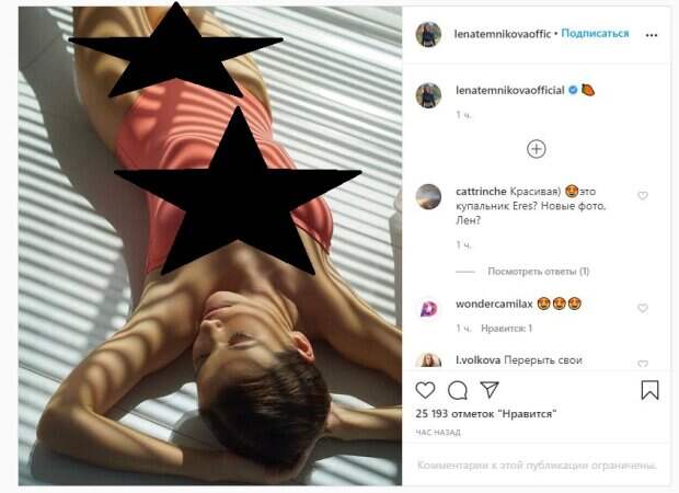 Известная певица Елена Темникова, бывшая солистка группы "Серебро", показала, как релаксирует Красотка в этот раз лежала на какой-то поверхности в розовом купальнике. Елена закинула руки за голову и закрыла глаза от удовольствия, а волосы были собраны в хвост. Темникова не стеснялась демонстрировать свое тело, которое практически слилось в один цвет с купальником, благодаря чему фото вышло довольно горячим.