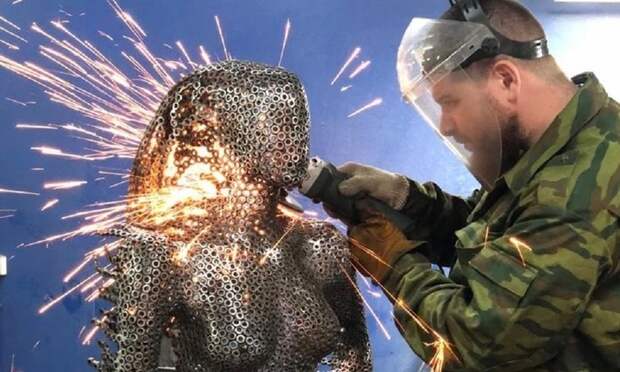 Автомеханик из Барнаула запечатлел образ любимой «из того, что было». «Я его слепила из того, что было…» — пела Алена Апина. Алтайский автомеханик Вадим Константинов сотворил свою Галатею не из мрамора, а из 11 тысяч одинаковых гаек, скрепленных при помощи сварки. Получилась впечатляющая скульптура обнаженной молодой женщины с развевающимися волосами.