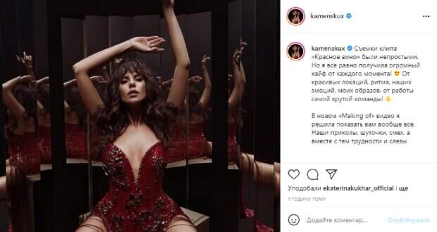 На новой фотографии Настя позирует в интересной зеркальной локации и соблазнительном образе. Перед камерой звезда появилась облегающем красном корсете, декорированном сверкающими красными стразами. Этот наряд красиво подчеркивает идеальную фигуру и изящные изгибы тела звезды. Ее волосы распущены и небрежно уложены, а на лице яркий макияж, она уверено смотрит в камеру. В подписи к фотографии Каменских рассказала о съемках нового клипа: "Съемки клипа «Красное вино» были непростыми. Но я все равно получила огромный кайф от каждого момента! От красивых локаций, ритма, наших эмоций, моих образов, от работы самой крутой команды! В новом «Making of» видео я решила показать вам вообще все. Наши приколы, шуточки, смех, а вместе с тем трудности и слезы. И показать вам, что создание чего-либо, а особенно создание клипа, - это работа многих людей, сотни продуманных деталей и большая любовь каждого из нас к тому, что мы делаем". Напомним, Каменских похвалилась садом и застекленной террасой в их с Потапом особняке: "Ретро во всем". Как сообщала Politeka, Каменских в летнем сарафане раскрыла секреты ухода за собой: "Самое главное...". Также Politeka писала, Каменских в красном платье с декольте перепутали с Ани Лорак: "Бомба ракета".