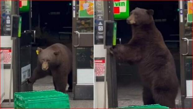 Продавец и посетители одного из калифорнийских маркетов сети 7-Eleven столкнулись с дикой природой ближе, чем того хотели.Об этом пишет New York Post.Женщина закричала, когда увидела на пороге большого бурого медведя. Продавец попытался выгнать дикое животное, будто обращаясь к человеку: "Выходи!".Однако косолапый не обращал внимания на панику присутствующих.