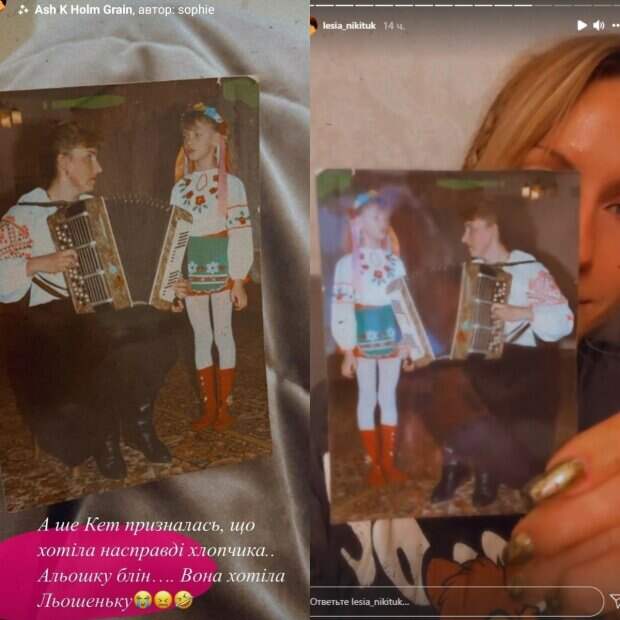 Кадр со своего детства Никитюк сопроводила историей, которую ее мама рассказала только сейчас: «А еще Кейт призналась, что на самом деле хотела мальчика. Алешку, блин… Она хотела Лешеньку» - выразила свое негодование Леся. Как известно, у звезды с мамой очень доверительные и хорошие отношения. Они вместе ездят на отдых, обмениваются сообщениями, и Леся нередко приезжает к родственникам с подарками. Отметим, Леся Никитюк является популярной украинской телеведущей. Она запомнилась по шоу "Орел и Решка", где 2 года путешествовала по миру. Сейчас Леся ведет программу "Хто зверху" со своим коллегой Сергеем Притулой. Ранее Леся Никитюк поделилась новыми видео на своей странице в Инстаграм. На кадрах она показала, как проводит время с мамой, которую называет "Мама Кет". Они решили прогуляться по торговому центру и купить одежду. "Вот такое что-то понашивали дурацкое, а вдруг кто-то что-то купит", - прокомментировала мама Леси Никитюк.. Ранее сообщалось, Никитюк показала красавицу-маму, впечатлив видом крупным планом: "Мои моменты счастья" Также, победитель "Голосу країни" Лазановский после признания в чувствах к Никитюк нашел ей замену: "С Лесей не вышло..." Politeka рассказывала, Никитюк в прозрачной блузке зацепила украинок за живое: "Очень хотелось бы с мужчиной и деньгами, но. .."