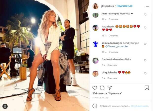 Между съемками на очередном мероприятии Дженнифер решила попозировать, пока ее коллеги были заняты делами. И даже в рабочей обстановке Лопес выглядела весьма интригующе и смело. В коротких джинсовых шортах и расстегнутой белой рубашке, которая была небрежно завязана на животе, Лопес повернулась в сторону от камеры. Таким образом внимание на «свежее» лицо Дженнифер падает еще сильнее, а ее вспушенные золотистые локоны выглядят по-прежнему хорошо. К слову, звезда также доказала и на модном показе, на что способна. Недавно 52-летняя знаменитость выделилась выбором весьма оригинального наряда. Лопес приехала на шоу Alta Moda в королевском образе. Тогда пользователи отреагировали о чень бкурно: «Малышка Джей; Оглушительный вид!; Господи, настоящая госпожа !!! Совершенно неотразимо!; Великолепно; Моя красавица». Напомним, что дочь Дженнифер Лопес поразила внешностью на совместном фото Как сообщала Politeka, Лопес с Аффлеком в дорогих нарядах озадачили видом на свидании Также Politeka писала, что Лопес в одном халатике раскрыла главный секрет привлекательности прямо в ванной