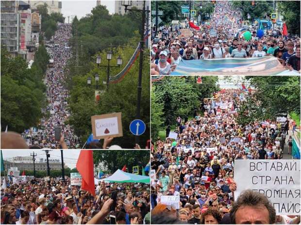 Ситуация в Хабаровске становится по-настоящему напряженной. Согласно последним данным, на улицы города вышло 6% населения. Речь идет о действительно впечатляющей цифре. Если перенести ее на столицу, получилось бы около миллиона человек.