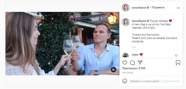 Соня в Инстаграм решила показать, как проводит время с Денисом в Италии. На кадрах Евдокименко гуляла вместе с избранником. Парочка развлекалась, ездила на авто, сидели вместе и выпивали вино. "Тосканские Каникулы! Новый влог уже на канале. Ссылка в профиле", - написала Соня. Фанаты посмотрели более 2 тысяч раз видео и написали комментарии: "Как всегда супер", "Вы видите щенка, путешествуете пешком и "мужчина всегда по телефону" - это самое интересное", "Люблю". Напомним, внучка Софии Ротару в стильном образе похвасталась своим гардеробом А еще Politeka сообщала, что внучка Ротару, вернувшись на родину, засветила своего "малыша" в роскошном авто Также Politeka писала, что внучка Софии Ротару показала родного брата и приспустила бретельки легкого платья