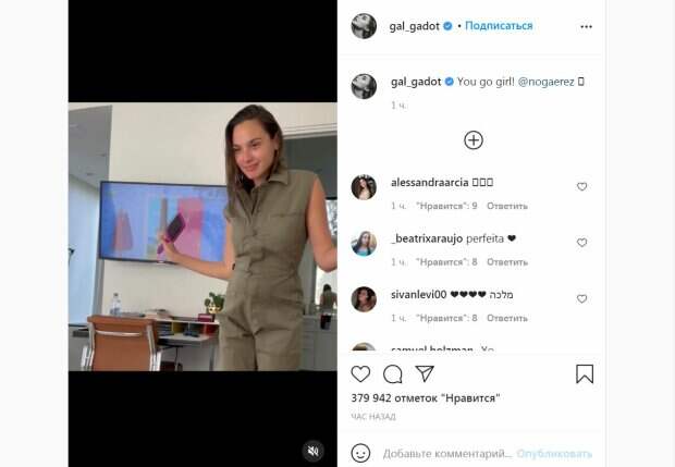 Супруги воспитывают двоих дочерей - Альму и Майю, а в прошлом месяце звезда объявила о том, что снова беременна. Красотка успевает вести страницы в соцсетях. В частности, на ее Инстаграм подписаны 51,4 миллиона человек. Красотка сумела удивить своих поклонников новым видео (Чтобы посмотреть, доскролльте до конца страницы) На кадрах модель соблазнительно двигает бедрами в зеленом комбинезоне под музыку. Видно, что красотка была в игривом настроении, демонстрируя животик. "Давай, девочка!", - написала "чудо-женщина". За час видео собрало почти 400 тысяч просмотров и много комментариев. "ИСКЛЮЧИТЕЛЬНАЯ КОРОЛЕВА