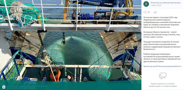 Промысел рыбы в Алтантическом океане регулярно ведут калининградские рыбаки на 19 среднетоннажных и крупнотоннажных судах, сообщил губернатор Калининградской области Антон Алиханов 11 октября в интервю «Российской газете». Алиханов отметил, что в советские годы в порту Калининграда базировались более 300 среднетоннажных и крупнотоннажных судов.