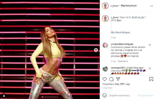 Красотка предстала в разных ракурсах и нарядах на сцене. Обложкой размещенного альбома стала фотография, на которой Джей Ло в желтом топе и тугих блестящих леггинсах, прогнувшись демонстрирует свою идеальную фигуру. Известно, что певица 51-летняя певица постоянно занимается спортом. В многочисленных интервью о том, как женщина сумела та прекрасно выглядеть, знаменитость подчеркивает, что не проходит ни дня, чтобы она не позанималась в тренажерном зале. Поклонники со всех уголков мира следят за жизнедеятельностью певицы, а также подписаны на фан-странички, в которых можно увидеть лучшие кадры кумира. В этот раз колонка комментариев наполнилась восхищенными возгласами и комплиментами: "Великолепное тело у вас, Мужчины и женщины с восхищением следят за Вами... продолжайте сиять, принцесса... Вы меня вдохновляете", "Красивые очаровательные обворожительные фото ❣❣❣