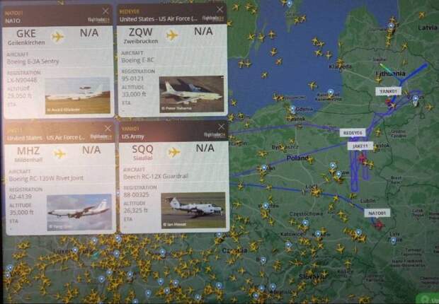 Усиление совместной российско-белорусской группировки войск вызвало неподдельный интерес у стран Североатлантического альянса. Спустя сутки после прибытия в Беларусь военных эшелонов с техникой и пролетов над Минском российских МиГ-31 сразу с четырех военных аэродромов НАТО поднялись самолеты-разведчики.