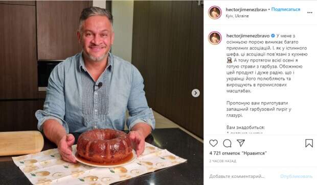 Эктор Хименес-Браво научил украинцев по-новому использовать один из сезонных осенних продуктов Как передает Politeka.net, известный шеф-повар и судья украинского проекта "МастерШеф" опубликовал в своем микроблоге в Инстаграм новый рецепт, сопроводив его яркими фото. Так, Хименес-Браво рассказал, как испечь "невероятно рыхлый и пропитанный глазурью" пирог из тыквы.