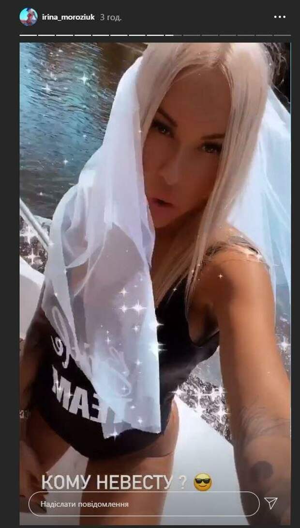 В какой-то момент бывшая жена футболиста сняла кепку и прикрепла к голове белую полупрозрачную ткань, похожую на фату. Получился весьма откровенный и необычный свадебный наряд. "Кому невесту?", - подписала она видео. К сожалению, польозователи сети не смогли прокомментировать внешний вид Ирини Морозюк, потому что она опубликовала кадры в сториз. Ранее знаменитость показала другой откровенный образ и поделилась интимными откровениями. Ирина Морозюк выложила в сториз селфи, для которого позировала в обтягивающей одежде. Она не надела бюстгальтер, поэтому ее грудь можно рассмотреть во всех анатомических подробностях. "Если у девушки одинаковое белье - лифчик и трусики, побриты ноги и остальные места, то не ты готовился к близости, а она. Потому не ты ее поимел, а она тебя", - написала Морозюк. Напомним, жена экс "динамовца" Морозюка разлеглась на диване в умопомрачительном наряде А еще Politeka сообщала, что бесстыжая жена экс-динамовца Морозюка сняла белье, заставив краснеть всех Также Politeka писала, что бесстыжая жена экс-"динамовца" Морозюка показала в экстра-мини тайное тату
