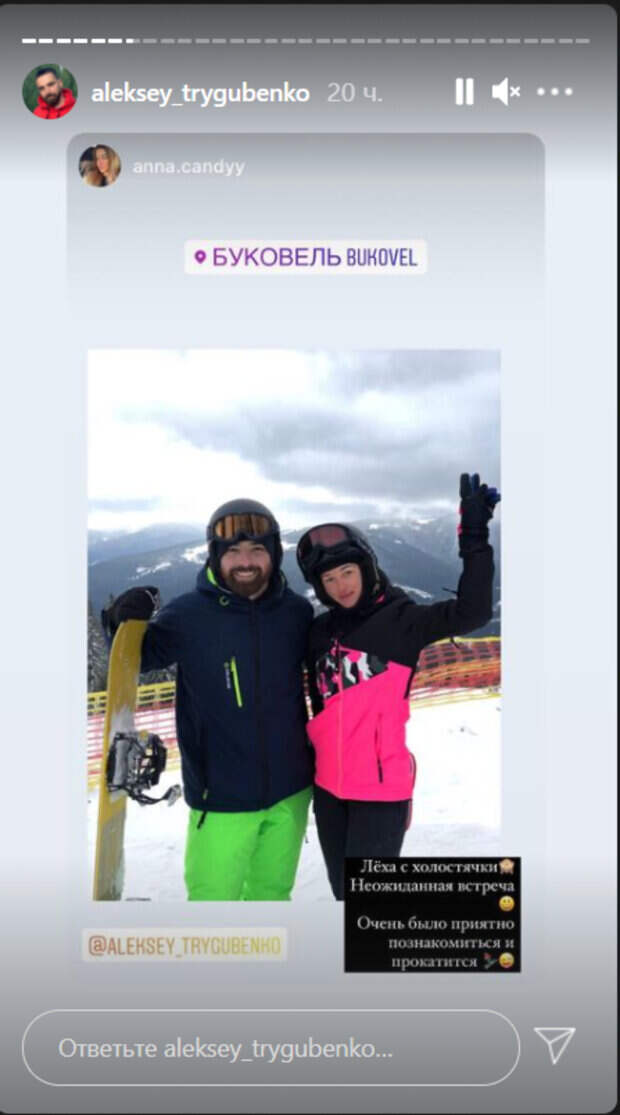 net. На снимке Алексей Тригубенко позирует на фоне канатной дороги и зимнего горного пейзажа. Он широко улыбается, так как рядом с ним чудесная компания: двое мужчин и девушка, которую он ненавязчиво обнял за талию. Также он поделился совместным с ней снимком в сторис. Посмотреть эту публикацию в Instagram Публикация от Алексей Тригубенко|Холостячка (@aleksey_trygubenko) Компания одета в зимние куртки и утепленные штаны для катания на сноуборде и лыжах. Все это снаряжение друзья держали в руках. Кадр показывает, что компания только что получила мощный заряд позитивных эмоций после катания с горных склонов, так как на их сноубордах и лыжах был виден налипший снег. Алексей Тригубенко пишет, что поездка в Буковель была незапланированной и от этого стала еще более приятной. По его словам он и подумать не мог, что будет так благодарен своему другу Леше за такую внезапную инициативу. Поклонники финалиста "Холостячки" в своих комментариях пожелали ему приятного отдыха и оценили его увлечения. "Прикольно было кататься?", " Класс, отличного отдыха", "Класс!! Какие вы молодцы!!!! Хорошего отдыха вам!!!!", " Круто провести время!!!", "Какой разносторонний мужчина! !! А еще и красавчик!!! Умничка просто", "Крутая компашка", " Супер-банда",- написали фолловеры к публикации Тригубенко. Напомним, что Алексей Тригубенко недавно признался, что после завершения проекта перестал общаться с "Холостячкой" Мишиной. Он также не смог определиться, разбила ли она ему сердце после отказа в финале. Тригубенко заявил, что не разбирается в чувствах. Напомним, новый "Холостяк" Михаил поразил горой мышц и заставил сердца биться чаще: "Пусть повезет в любви, а то…" Как сообщала Politeka, Мишина заставила Эллерта раскрыть главный секрет, все произошло до "Холостячки": "Давай расскажи, ты…" Также Politeka писала, что отвергнутый "Холостячкой" Тригубенко признался, что у него сейчас с Мишиной и в своей проблеме: "Я не умею..."