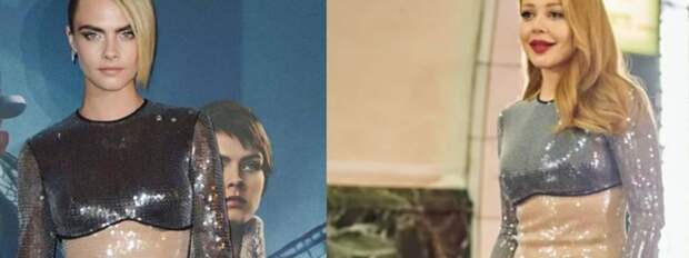 [caption id="attachment_49159" align="aligncenter" width="720"] Тина Кароль в метро[/caption]Фанаты Тины из клуба Фантина обнаружили аналогичное платье на известной модели Каре Делевинь, которое она презентовала на дизайнерском показе в Лондоне. Правда, на наряде Кары верх намного темнее.[caption id="attachment_51009" align="aligncenter" width="1080"] Кара Делевинь и Тина Кароль[/caption]И началсь горячие споры - кому наряд больше идет. Большинство публики назвали Тину - она более живая, естественная и соблазнительная. Но нашлись и такие, которые сказали, что платье Тину полнит. А вам как кажется?Аналогично стали вспоминать и других звезд, которые показались в одинаковых наряд. Вот подборка интересных фото.[caption id="attachment_51031" align="aligncenter" width="942"] Тина Кароль и Надя Дорофеева[/caption][caption id="attachment_51033" align="aligncenter" width="1319"] Слава Каминская и Оля Полякова[/caption][caption id="attachment_51035" align="aligncenter" width="1400"] Екатерина Кухар и Вера Брежнева[/caption][caption id="attachment_51037" align="aligncenter" width="1518"] Маша Ефросинина, Катя Осадча и Наталья Могилевская[/caption][caption id="attachment_51041" align="aligncenter" width="1427"] Надя Дорофеева и Оля Полякова[/caption][caption id="attachment_51045" align="aligncenter" width="990"] Анжелина Джоли и Кейт Миддлтон[/caption][caption id="attachment_51047" align="aligncenter" width="988"] Юлия Барановская и Валерия[/caption][caption id="attachment_51017" align="aligncenter" width="990"] Ева Герцигова и Дженифер Лопес[/caption][caption id="attachment_51019" align="aligncenter" width="750"] Джулия Майклс и Яна Рудковская[/caption][caption id="attachment_51021" align="aligncenter" width="1600"] Много разных актрис в одинаковых нарядах[/caption][caption id="attachment_51055" align="aligncenter" width="750"] Кристина Орбакайте и Наоми Кэмпбел[/caption][caption id="attachment_51025" align="aligncenter" width="990"] Кэтрин Зета Джонс и Сара Хайленд[/caption][caption id="attachment_51059" align="aligncenter" width="1600"] Голливудские красавицы в одинаковых платьях[/caption][caption id="attachment_51061" align="aligncenter" width="750"] Полина Гагарина и Алексис Блэдел[/caption]