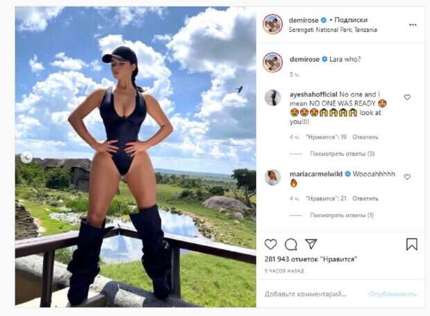 Об этом пишет Politeka.net со ссылкой на страничку знаменитости. "Лара кто?", - написала красотка под фото. Фанаты поставили сотни тысяч лайков и написали комментарии: "Никто, я имею в виду, никто не готов. Посмотри на себя", "Лучшая поездка", "какого восторга я бы хотел от тебя", "птица - оплачиваемый актер", "чудесный ребенок, замечательный", "вау, красота поймана", "Всегда светящаяся малышка", "Я не понимаю по английски, но шью", "Какой напиток ты любишь утром? честный", "давай совершим набег на гробницы", "Пятая точка такая сочная !!!", "Посмотри на эти облака". Мы писали, что известная модель Деми Роуз кружит голову своими шикарными формами. Звезда надела черное обтягивающее боди на замочке. Она игриво расстегнула молнию и похвасталась пышной грудью, которой явно было тесно под таким нарядом. Вырезы в районе бедер оголили округлые бедра и упругие ягодицы, которые привлекали к себе внимание не меньше, чем груди. Напомним, Деми Роуз устроила релакс в мини-купальнике, который ничего не скрыл А еще Politeka писала, что роскошная Деми Роуз подразнила аппетитными "булочками" в обтягивающем наряде Также Politeka сообщала, что Эби Рэтчфорд в прозрачных чулочках развернулась спиной, завлекая видом