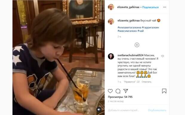 «А мы чаевничаем! Мне Гаррик сделал чай – вот такой вкусный», - рассказал Галкин. «- И Лизе тоже! – И прянички даже положил!», - тут же принялись перебивать отца дети. «Вау! Спасибо, сыночка», - не сдержал чувств счастливый артист. Поклонники не смогли пройти мимо таких трогательных кадрах. При этом, в комментариях заметили, что на видео никак не упоминается Пугачева. «Максим, вы очень счастливый человек! Я чувствую, что вы не хотите упустить ни одной минуты радости в вашей семье!», «Гарри растёт настоящим мужчиной!», «А где мама всегда?», «А почему маму не пригласили?», «Какая прелесть! Самая большая ценность в жизни- это крепкая, дружная, любящая семья», «Самые воспитанные дети и ещё у Киркорова, любо дорого смотреть», «Везёт вам! Гаррик умница!», «А мамочка где? вы всегда без нее», - пишут люди. Напомним, 71-летняя Пугачева ошеломила откровенным нарядом и худобой рядом с экс-любовником: "Ну просто...". Как сообщала Politeka, бесстрашная дочь Галкина и Пугачевой показала опасный трюк на снежной горке, папаша ахнул. Также Politeka писала, что Максим Галкин в подстреленных штанах устроил перед 71-летней Пугачевой сеанс обольщения.