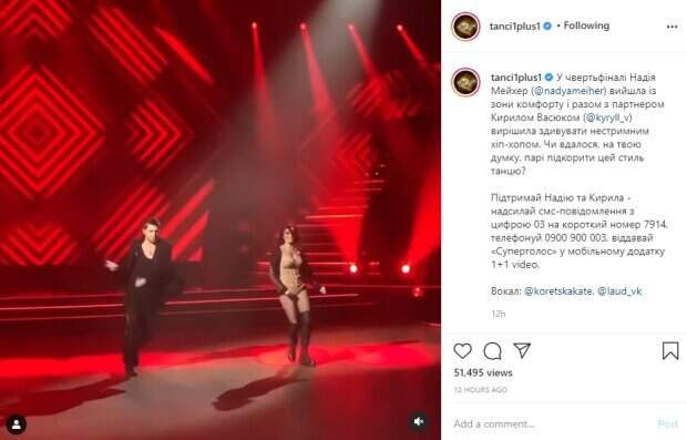 Ее партнер оделся во все черное: пиджак, штаны, майка и туфли. Судьи оценили танец пары в 35 баллов, но далеко не все из них остались удовлетворены качеством постановки. Так Влад Яма похвалил участников за идею, заложенную в номер, но раскритиковал их за недостаток техники: "Это неплохо, но от вашей пары, претендующей на победу, я сегодня ожидал большего". Екатерина Кухар также заметила, что движениям Надежды Мейхер в этот раз не доставало филигранности. "Я восхищаюсь вашим характером бойца, но сегодня ваши эмоции опережали ваши танцевальные движения. Я согласна с Владом и до королевы вам не хватает второй партии", - отметила судья. В социальных сетях многие зрители негодуют из-за того, что из проекта выгнали Сергея Мельника и Аделину Дели, но оставили Надежду Мейхер и Кирилла Васюка: "Сейчас опять попадет в номинацию, и опять ее судьи вытащат за уши. Наде пора домой"; "Танец на 4-ое место"; "Естественно, Чапкис на защиту. Она просто его любимица, он ее постоянно защищает"; "Мейхер, как Фреймут... Тянут и тянут из эфира в эфир"; "Домой, Надежда - позор"; "Танец то где? Дергания как всегда"; "Ей уже давно пора домой!"; "Кошмар, намного большего ожидала от Надежды. Плохой партнёр - очень странным движениям учит, это не хип-хоп был, плохой хореограф, наверно, у их пары". Напомним, что Мейхер задала жару с красавцем за кулисами "Танців з зірками", кадры: "Блин, какие у тебя..." Как сообщала Politeka, что загадочная Надежда Мейхер примерила кожаное платье и покорила своим талантом: «Вечер любви…». Также Politeka писала, что у Надежды Мейхер новый партнер на "Танцях з зірками", пророчат провал: "Бедные...".