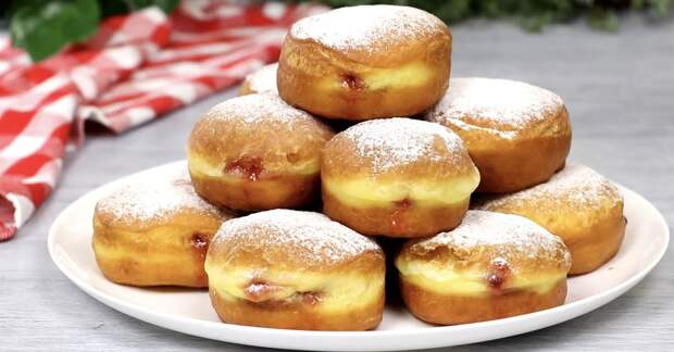 Какие же вкусные эти дрожжевые пончики с повидлом! Для их приготовления не нужно танцевать у духовки, боясь, что пышки опадут. Пожарьте пончики во фритюре, чтобы подать к чаю роскошное домашнее лакомство. Вы можете начинить эти пышки любым вареньем или повидлом. Домашний джем также подойдет для данной цели.